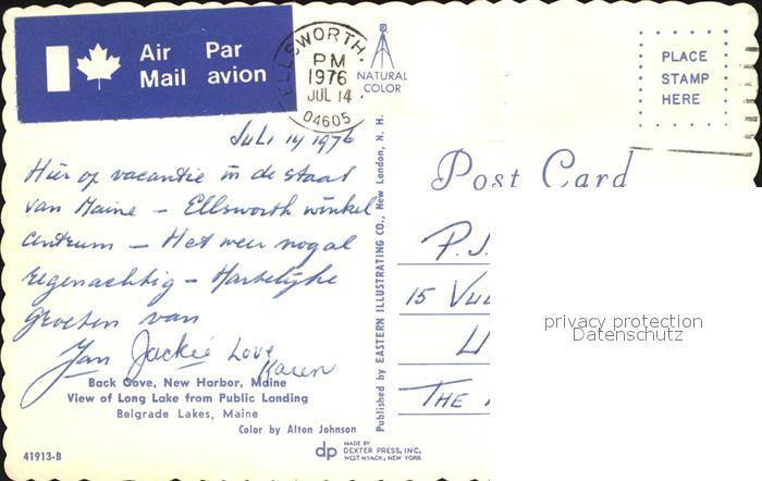 72482899 old postcard New Harbor Back Cove Long Lake Public Landing Belgrade Lakes Maine Vacationland postalisch gelaufen Erhaltung siehe scans KatCode: 14140210000000
