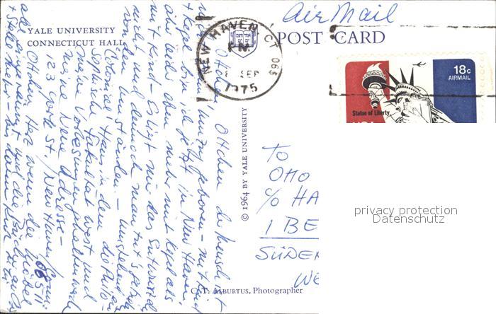 72049261 old postcard New Haven Connecticut Yale University postalisch gelaufen Erhaltung siehe scans KatCode: 14140070000000