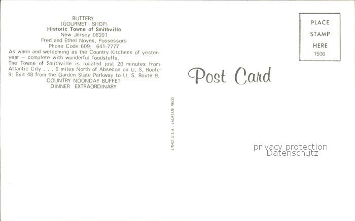 72092670 New Jersey Buttery Historic Towne Smithville postalisch nicht gelaufen Erhaltung siehe scans KatCode: 14140