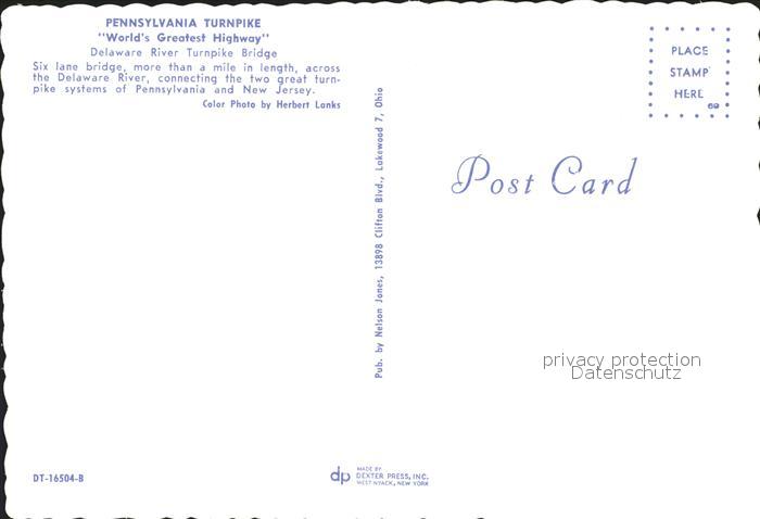 71847897 New Jersey Delaware River Bridge Pennsylvania Turnpike Fliegeraufnahme postalisch nicht gelaufen Erhaltung siehe scans KatCode: 14140