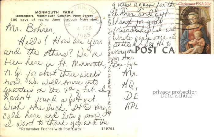 72476781 old postcard New Jersey Monmouth Park Fliegeraufnahme postalisch gelaufen Erhaltung siehe scans KatCode: 14140