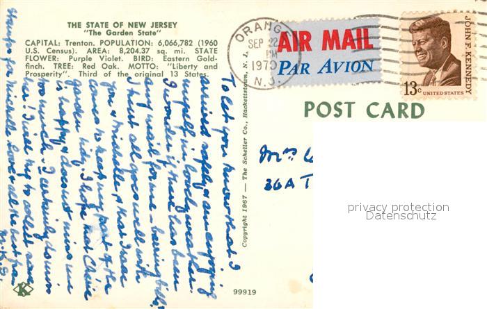 72956832 old postcard New Jersey US-State The Garden State Map postalisch gelaufen Erhaltung siehe scans [FriedD77] KatCode: 14140320000000