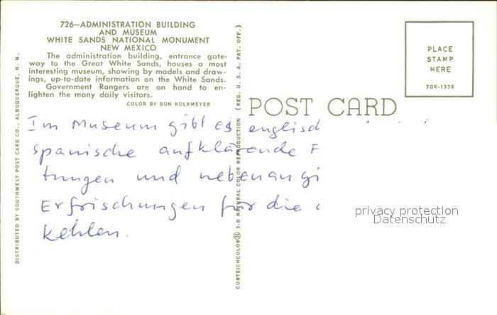 72368606 New Mexico US-State Administration Building Museum White Sands National Monument postalisch nicht gelaufen Erhaltung siehe scans KatCode: 14140330000000