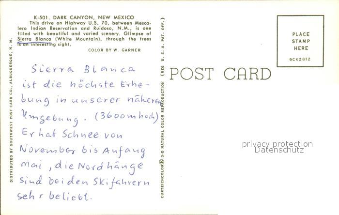 72368595 New Mexico US-State Dark Canyon postalisch nicht gelaufen Erhaltung siehe scans KatCode: 14140330000000