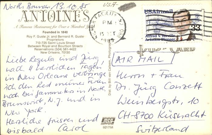 11491321 old postcard New Orleans Louisiana Antoine’s Restaurant founded in 1840 postalisch gelaufen Erhaltung siehe scans KatCode: 14140200000000
