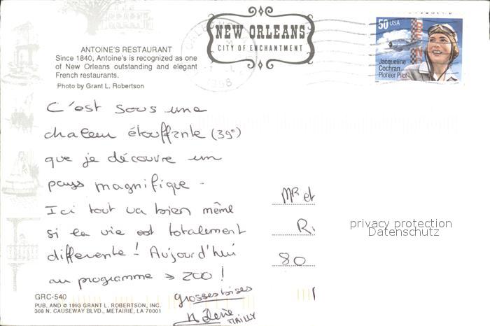72378369 old postcard New Orleans Louisiana Antoines Restaurant Pferdekutschen postalisch gelaufen Erhaltung siehe scans KatCode: 14140200000000