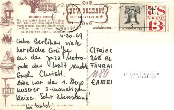 72662960 old postcard New Orleans Louisiana Bourbon Street postalisch gelaufen Erhaltung siehe scans [WerneD78] KatCode: 14140200000000