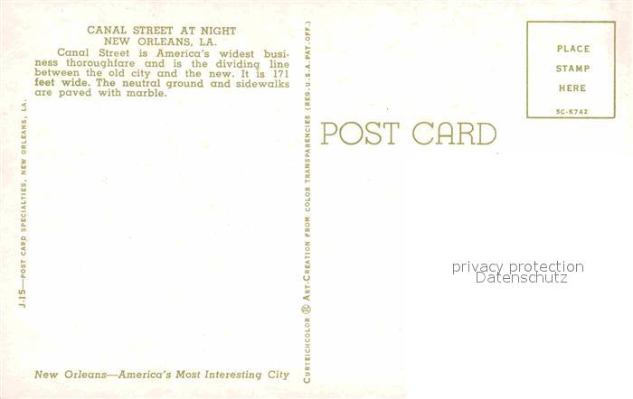 72908161 New Orleans Louisiana Canal Street at night postalisch nicht gelaufen Erhaltung siehe scans [LiesaD40] KatCode: 14140200000000