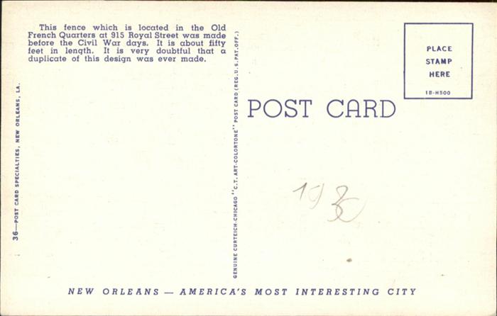 11044640 New Orleans Louisiana Corn Fence postalisch nicht gelaufen KatCode: 14140200000000