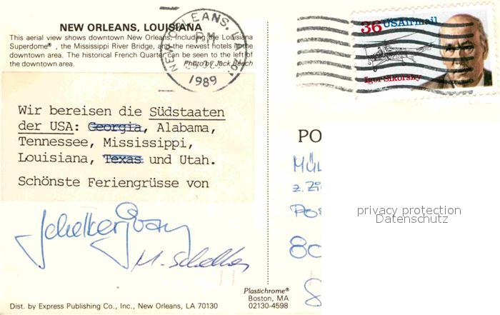 72705641 old postcard New Orleans Louisiana Fliegeraufnahme postalisch gelaufen Erhaltung siehe scans [AndreD76] KatCode: 14140200000000