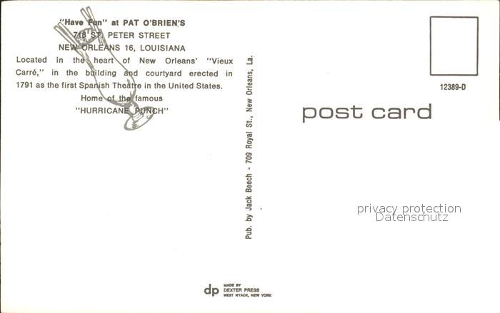 72167254 New Orleans Louisiana Have Fun at Pat O Briens postalisch nicht gelaufen Erhaltung siehe scans KatCode: 14140200000000