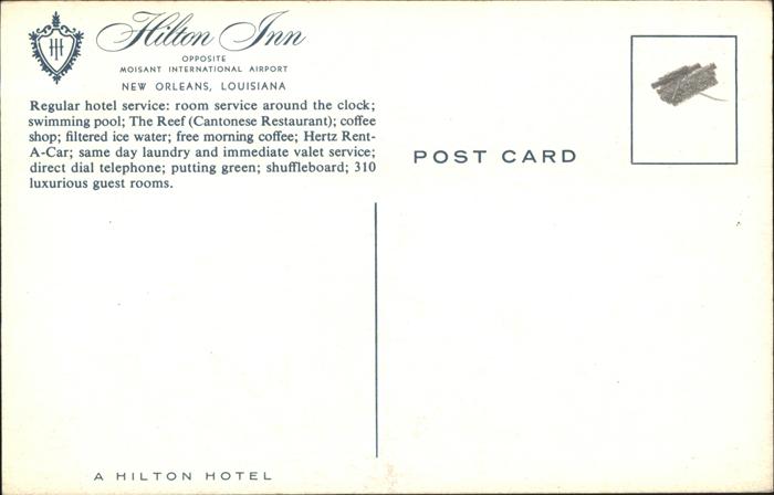 11312206 New Orleans Louisiana Hotel Hilton Inn opposite Moisant International Airport postalisch nicht gelaufen gute Erhaltung KatCode: 14140200000000