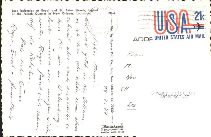 72381854 old postcard New Orleans Louisiana Iron Lace Balconies postalisch gelaufen Erhaltung siehe scans KatCode: 14140200000000