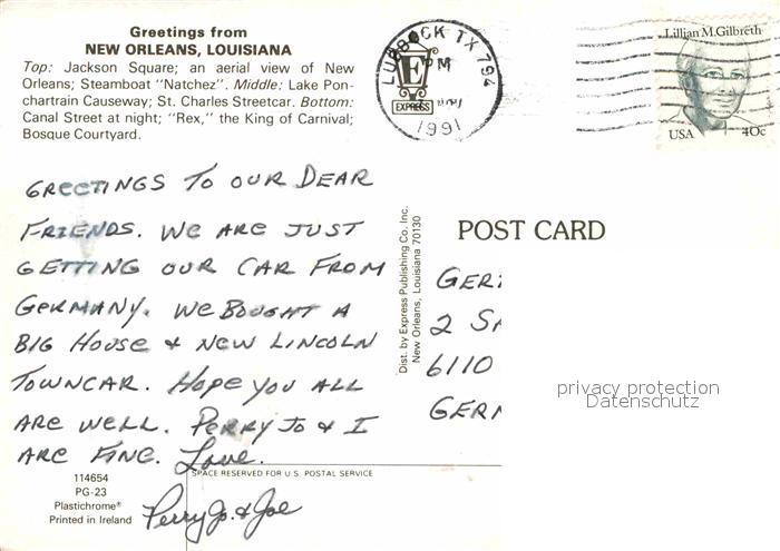 72803475 old postcard New Orleans Louisiana Jackson Square Steamboat Lake Ponchartrain Causeway Streetcar Canal Street Rex King of Carnival Bosque Courtyard postalisch gelaufen Erhaltung siehe scans [FriedD77] KatCode: 14140200000000