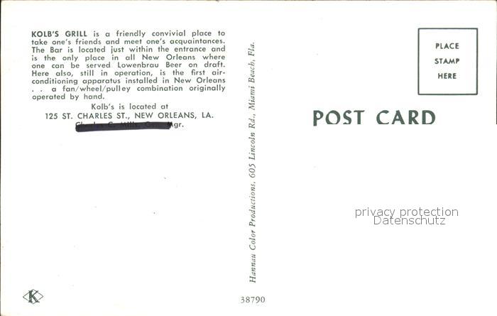 72486794 New Orleans Louisiana Kolbs Grill Restaurant postalisch nicht gelaufen Erhaltung siehe scans KatCode: 14140200000000