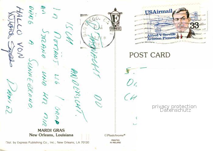 72749423 old postcard New Orleans Louisiana Mardi Gras Kostueme postalisch gelaufen Erhaltung siehe scans [FriedD77] KatCode: 14140200000000