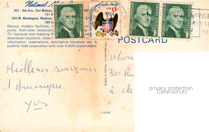 72756377 old postcard New Orleans Louisiana National Motor Inn Hotel postalisch gelaufen Erhaltung siehe scans [KathaD81] KatCode: 14140200000000