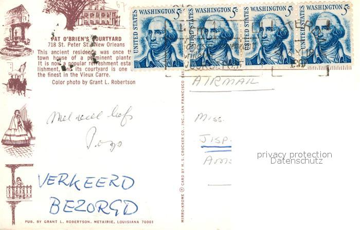72926889 old postcard New Orleans Louisiana Pat O Briens Courtyarf postalisch gelaufen Erhaltung siehe scans [NatalD47] KatCode: 14140200000000