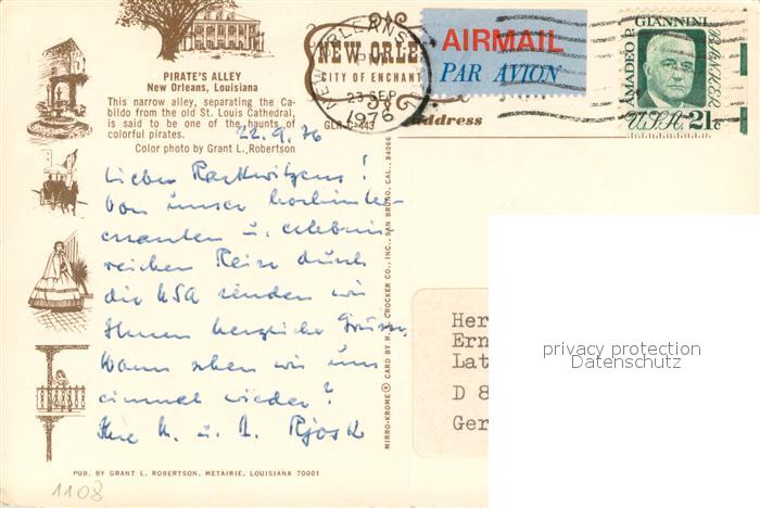 73713600 old postcard New Orleans Louisiana Pirates Alley postalisch gelaufen Erhaltung siehe scans [FriedD77] KatCode: 14140200000000