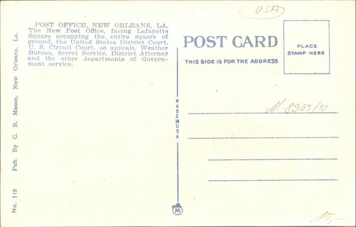 11032225 New Orleans Louisiana Post Office postalisch nicht gelaufen KatCode: 14140200000000