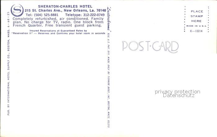 71953350 New Orleans Louisiana Sheraton- Charles Hotel postalisch nicht gelaufen Erhaltung siehe scans KatCode: 14140200000000