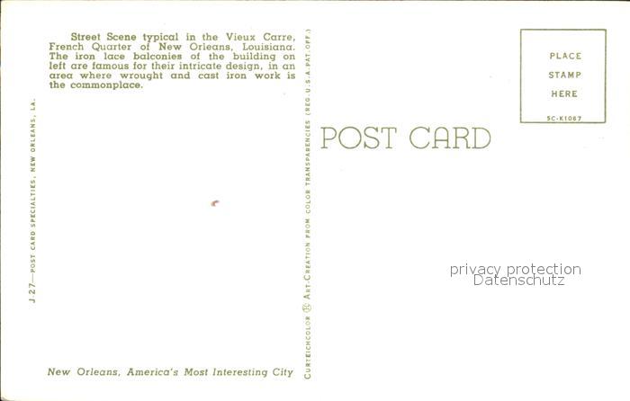72046854 New Orleans Louisiana Street Scene postalisch nicht gelaufen Erhaltung siehe scans KatCode: 14140200000000