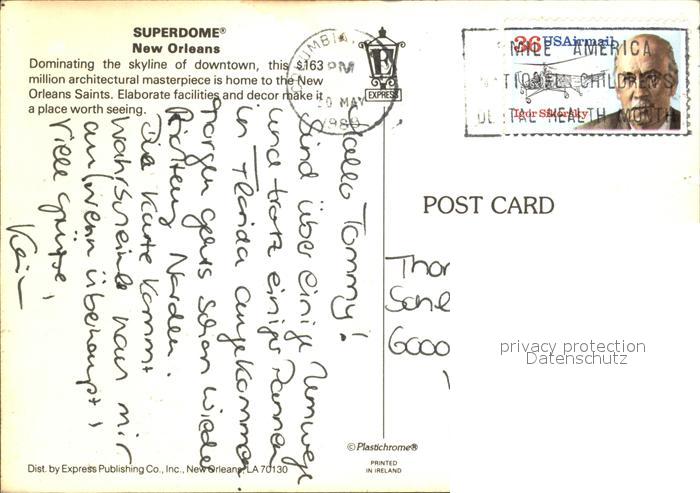 72434224 old postcard New Orleans Louisiana Superdome Skyline of Downtown postalisch gelaufen Erhaltung siehe scans KatCode: 14140200000000