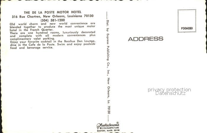 72487570 New Orleans Louisiana Te De La Poste Motor Hotel postalisch nicht gelaufen Erhaltung siehe scans KatCode: 14140200000000
