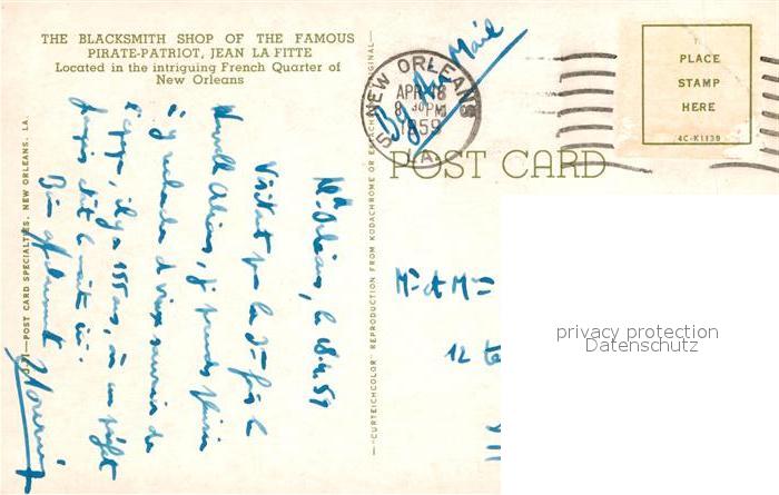 72944252 old postcard New Orleans Louisiana The Blacksmith Shop of the Pirate Patriot Jean Lafitte postalisch gelaufen Erhaltung siehe scans [WerneD78] KatCode: 14140200000000