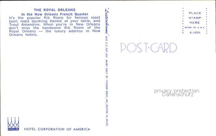 72409306 New Orleans Louisiana The Royal Orleans Restaurant Rib Room postalisch nicht gelaufen Erhaltung siehe scans KatCode: 14140200000000