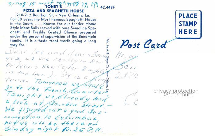 72876388 New Orleans Louisiana Tonis Pizza und Spaghetti Haus postalisch nicht gelaufen Erhaltung siehe scans [AndreD76] KatCode: 14140200000000