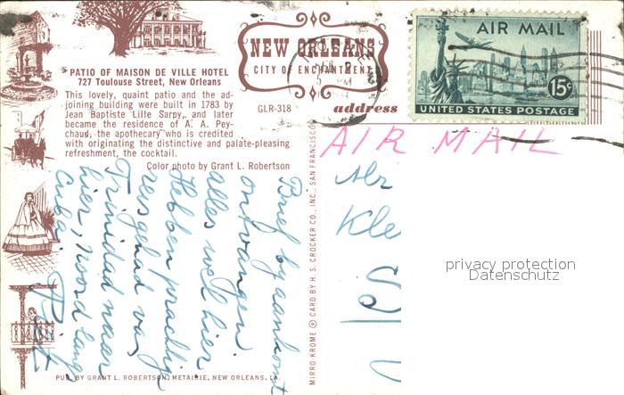 71954694 old postcard New Orleans Louisiana Ville Hotel postalisch gelaufen Erhaltung siehe scans KatCode: 14140200000000