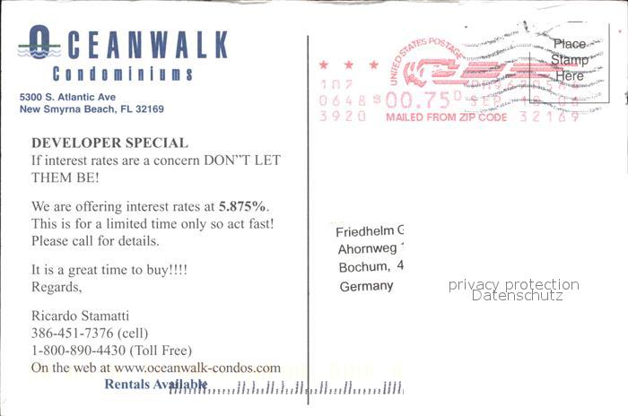 72131322 old postcard New Smyrna Beach Oceanwalk Hotel postalisch gelaufen Erhaltung siehe scans KatCode: 14140110000000