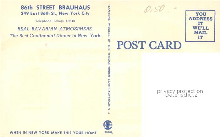 73641308 New York City 86th Street Brauhaus postalisch nicht gelaufen Erhaltung siehe scans [FriedD77] KatCode: 14140340000000