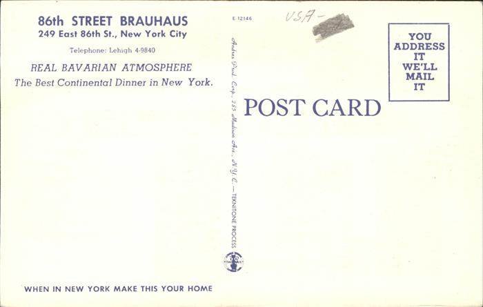 11491494 New York City 86th Street Brauhaus postalisch nicht gelaufen KatCode: 14140340000000