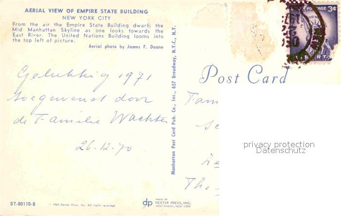 72781278 old postcard New York City Aerial view of Empire State Building postalisch gelaufen Erhaltung siehe scans [WerneD78] KatCode: 14140340000000