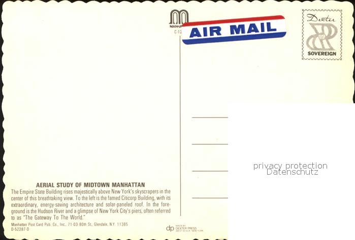 71668979 New York City Aerial view of Midtown Manhatten postalisch nicht gelaufen Erhaltung siehe scans KatCode: 14140340000000