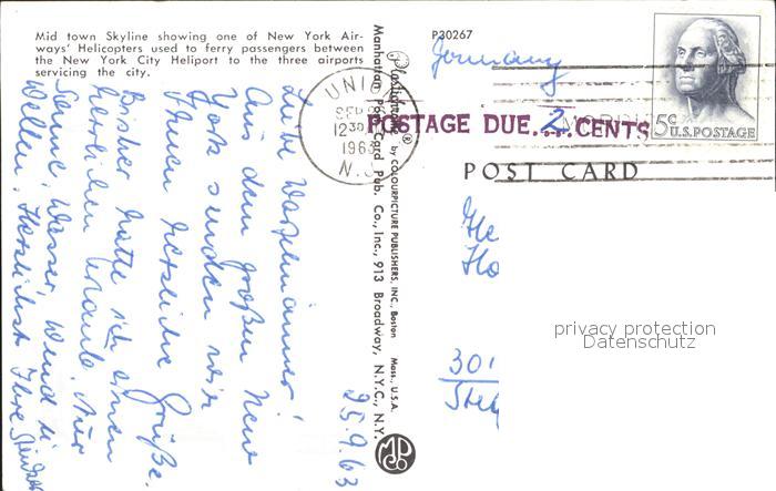 72382211 old postcard New York City Airways Helicopter postalisch gelaufen Erhaltung siehe scans KatCode: 14140340000000