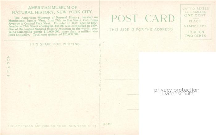 43099697 New York City American Museum of Natural History postalisch nicht gelaufen Erhaltung siehe scans [FriedD77] KatCode: 14140340000000