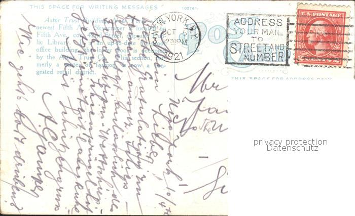 11693771 old postcard New York City Astor Trust Building 5th Avenue postalisch gelaufen Erhaltung siehe scans KatCode: 14140340000000