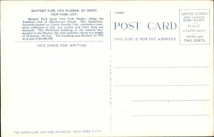 11044934 New York City Battery Park Harbor postalisch nicht gelaufen KatCode: 14140340000000
