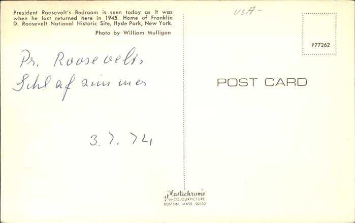 11491545 New York City Bedroom Franklin Roosevelt National Historic Site Hyde Park postalisch nicht gelaufen Erhaltung siehe scans KatCode: 14140340000000