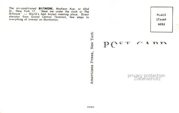 73333559 New York City Biltmore Hotel Illustration postalisch nicht gelaufen Erhaltung siehe scans [FriedD77] KatCode: 14140340000000