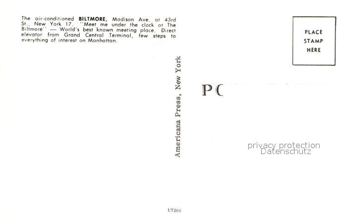 73333578 New York City Biltmore Hotel Illustration postalisch nicht gelaufen Erhaltung siehe scans [FriedD77] KatCode: 14140340000000