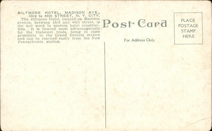 11112292 New York City Blitmore Hotel postalisch nicht gelaufen KatCode: 14140340000000