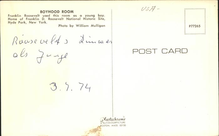 11491544 New York City Boyhood Room Franklin Roosevelt National Historic Site Hyde Park postalisch nicht gelaufen Erhaltung siehe scans KatCode: 14140340000000