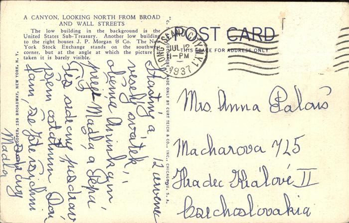 11112391 old postcard New York City Broad Wall Nassau Streets Financial Center postalisch gelaufen KatCode: 14140340000000