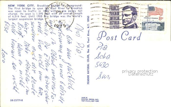 71820011 old postcard New York City Brooklyn Bridge at night Baghdad on the Hudson River postalisch gelaufen Erhaltung siehe scans KatCode: 14140340000000