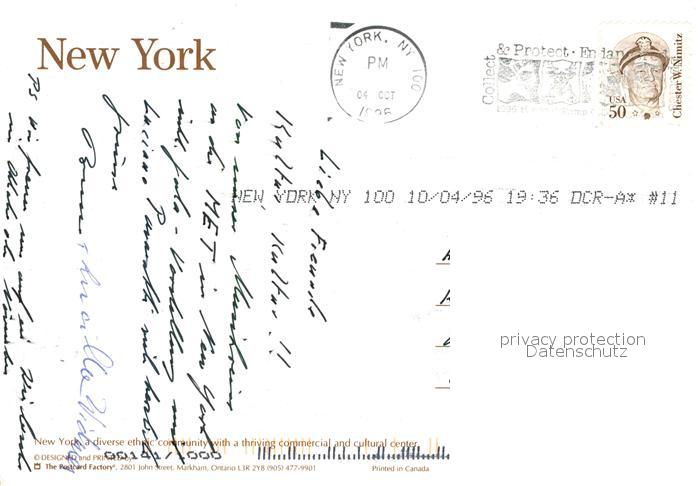 73164899 old postcard New York City Brueckenpartie mit Skyline postalisch gelaufen Erhaltung siehe scans [LiesaD40] KatCode: 14140340000000