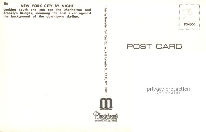 73123603 New York City by night looking south Manhattan Brooklyn Bridge East River Downtown Skyline postalisch nicht gelaufen Erhaltung siehe scans [FriedD77] KatCode: 14140340000000
